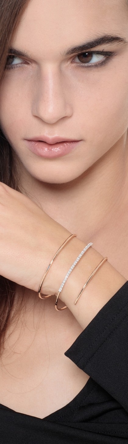 Bracelet à ressort en Or Rose et Blanc 18K avec Diamants Taille Brillante