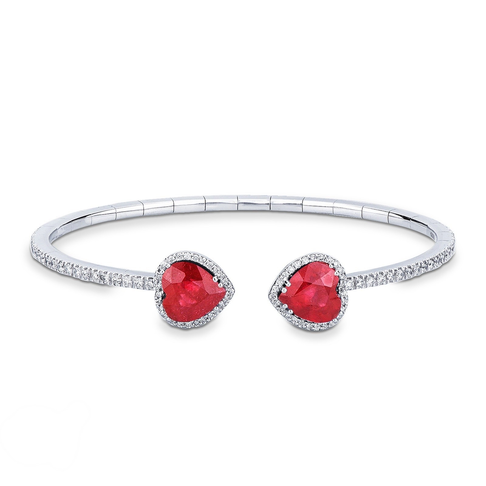 Bracelet en or blanc 18k avec diamants et rubis en forme de cœur