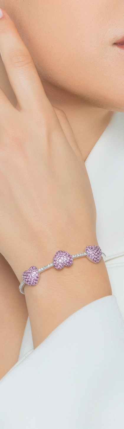 Bracelet en or blanc et diamants avec saphirs roses