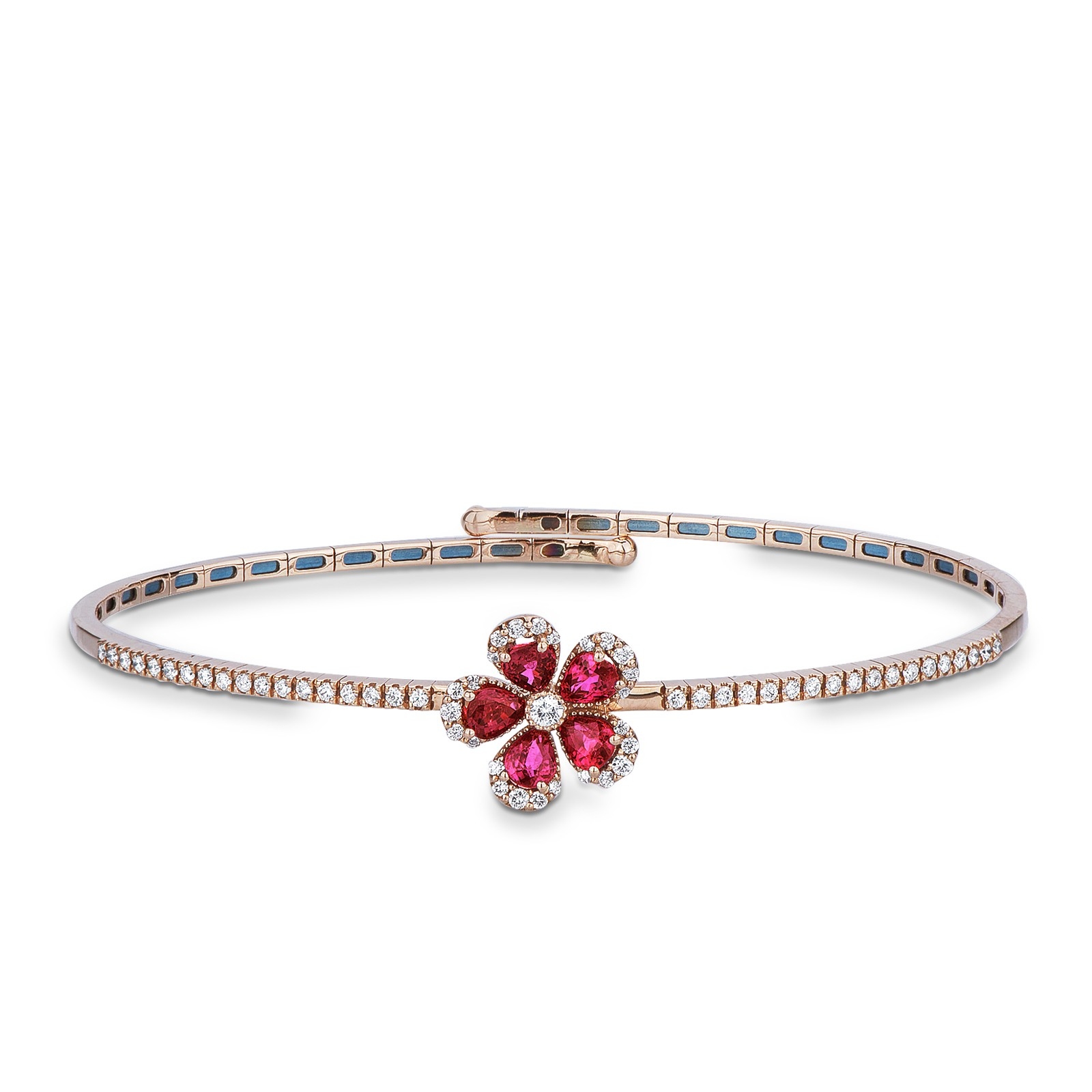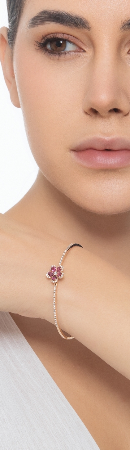 Bracelet fleur en or rose avec rubis et diamants