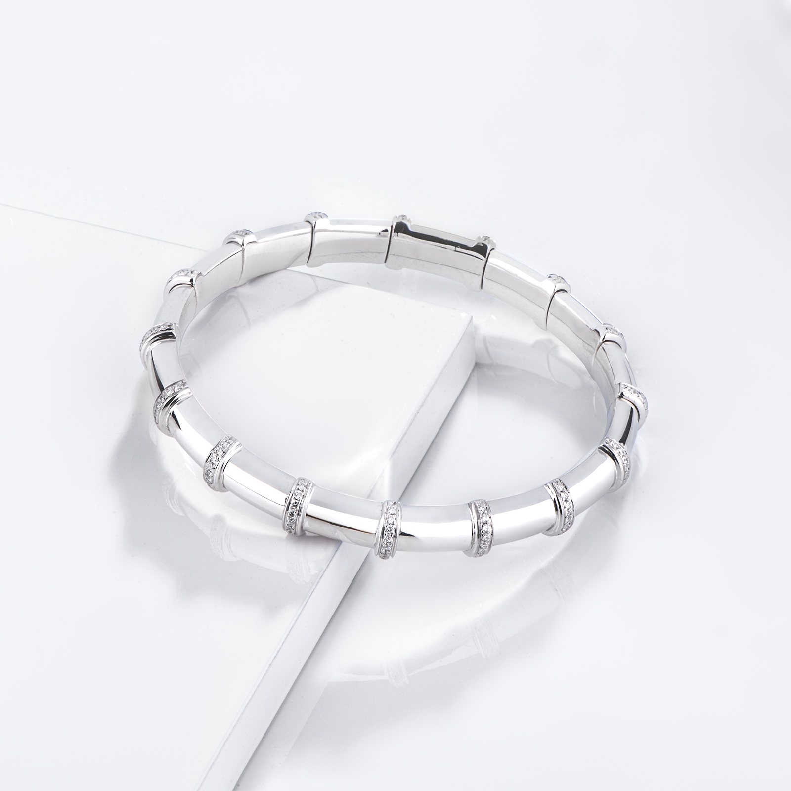 Bracelet élastique en or blanc 18k avec rangées de diamants