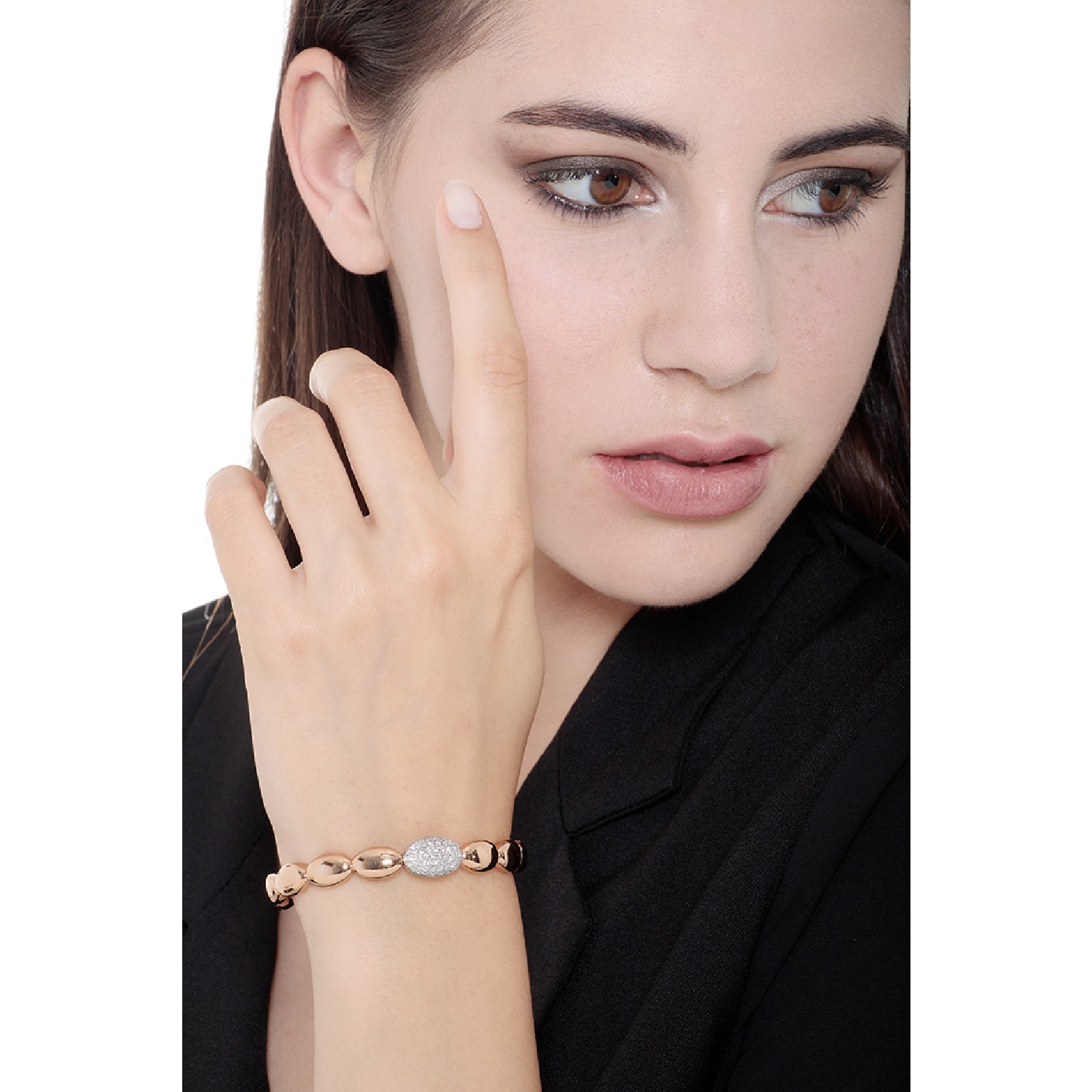 Bracelet ressort avec ovales en or blanc et rose 18k avec diamants