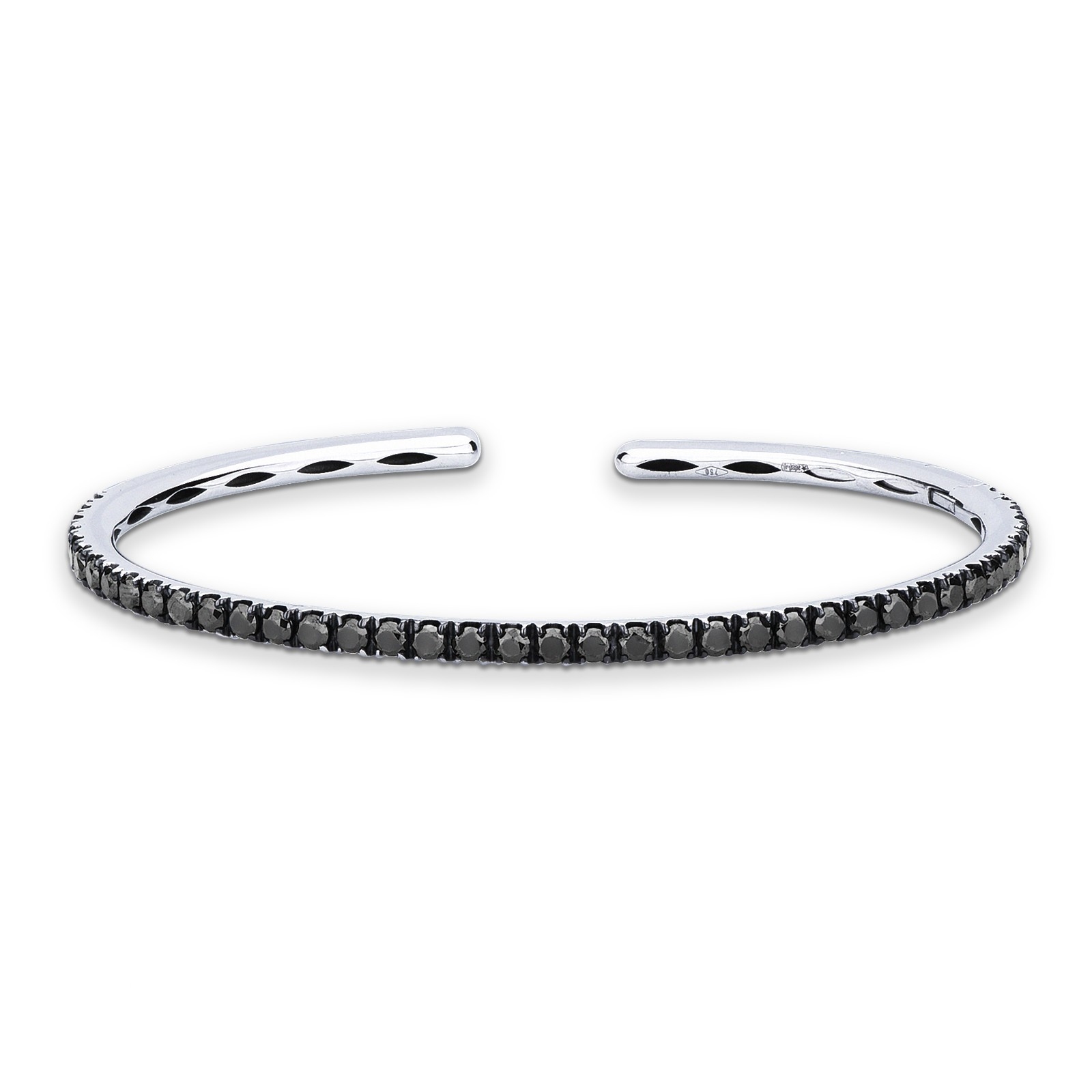 Bracelet rigide en or blanc 18 carats avec diamants noirs