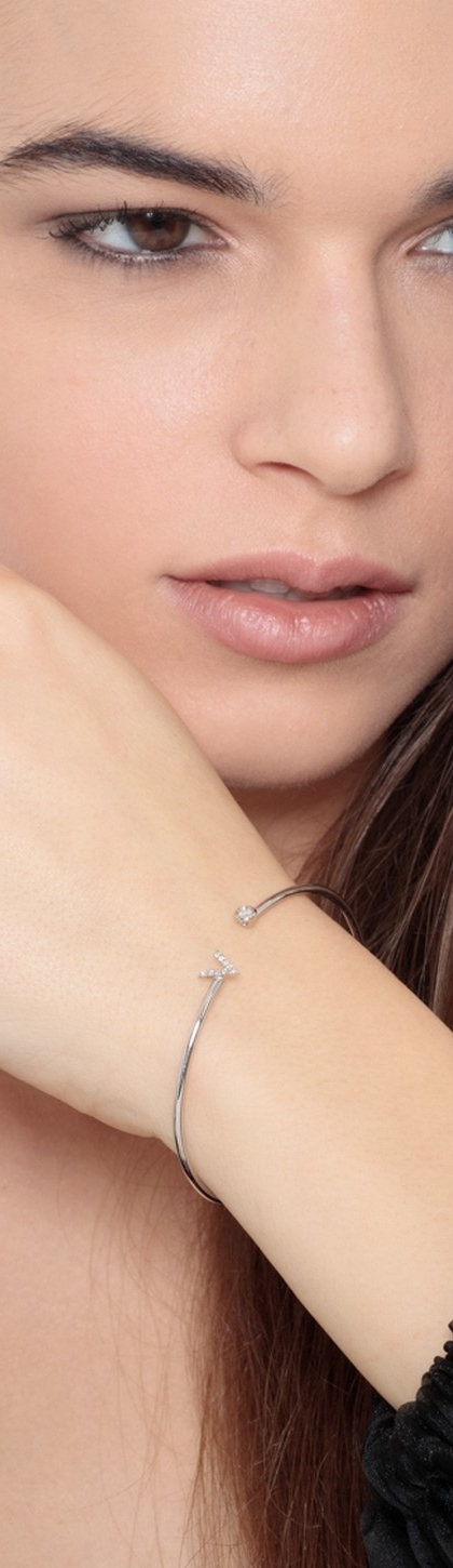 Bracelet rigide en or blanc 18k avec lettre V et diamants