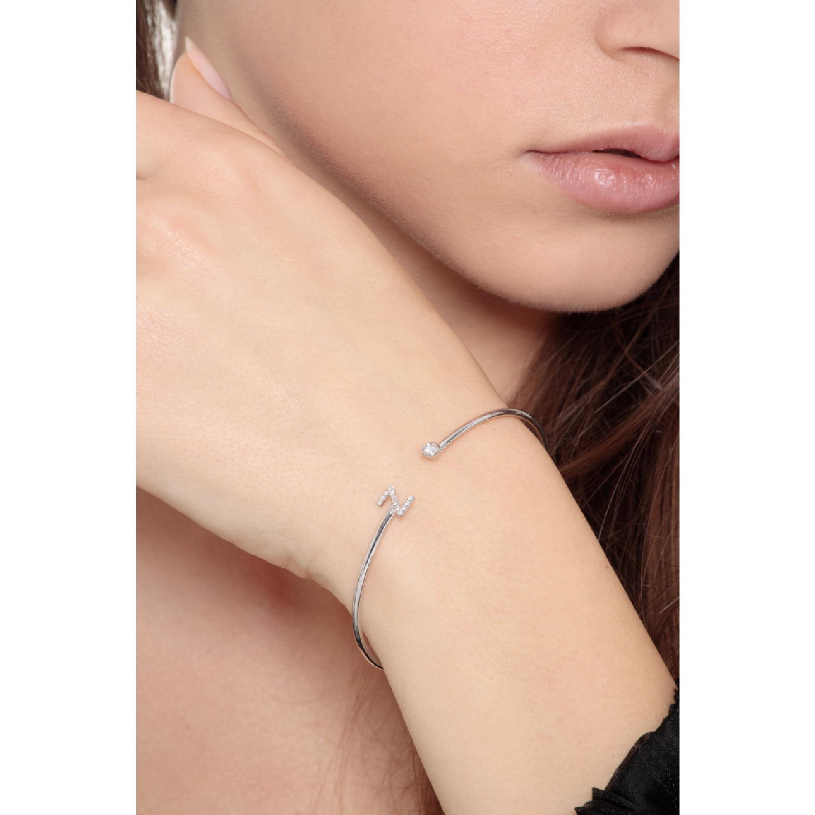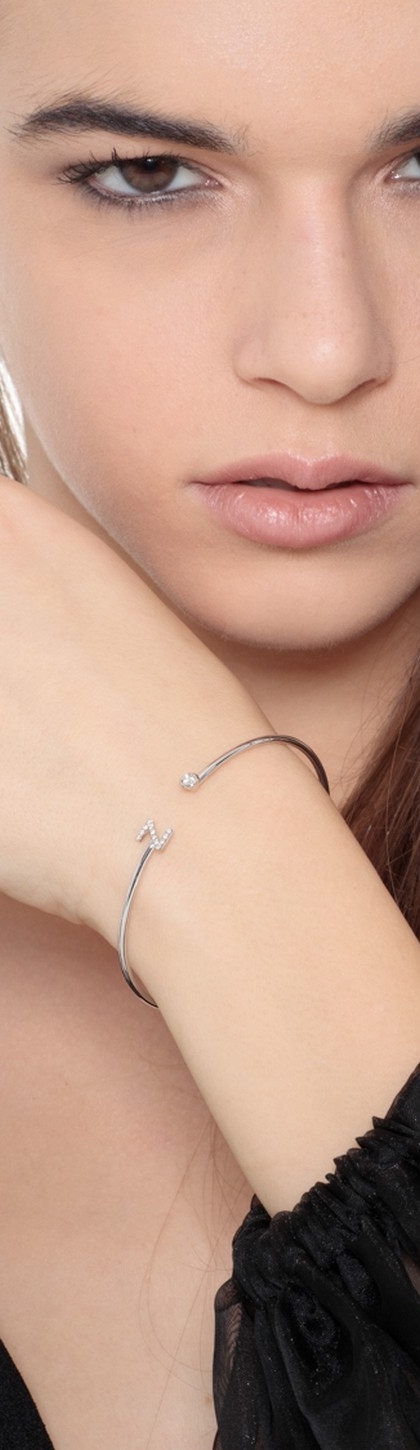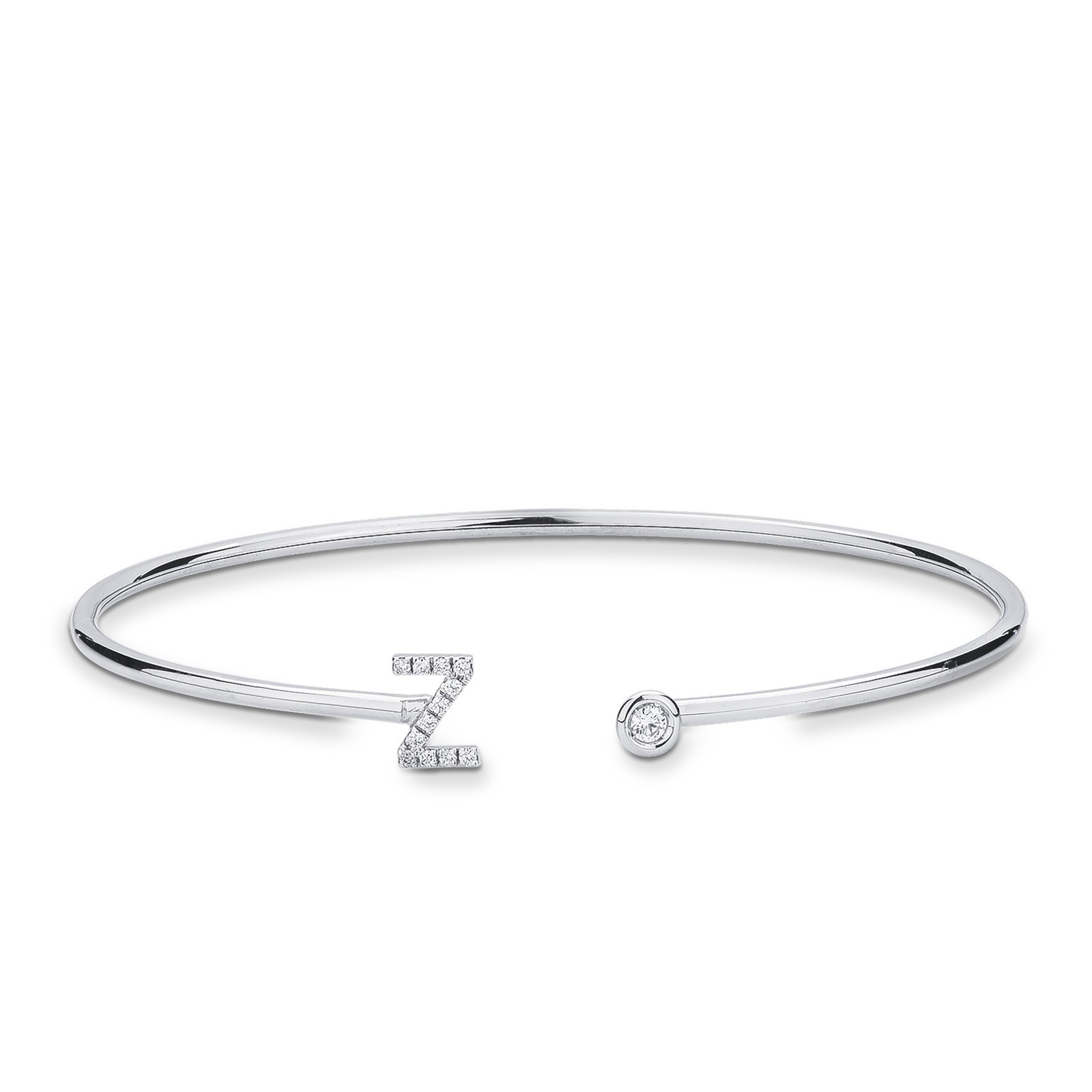 Bracelet rigide en or blanc 18k avec lettre Z