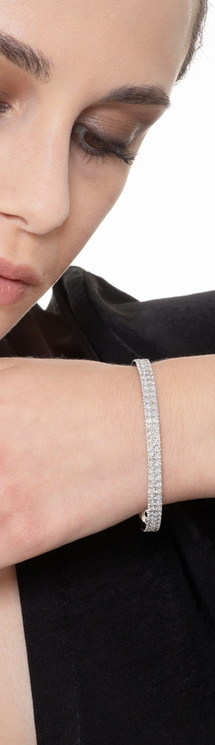 Bracelet rigide en or blanc 18k double rangee de diamants