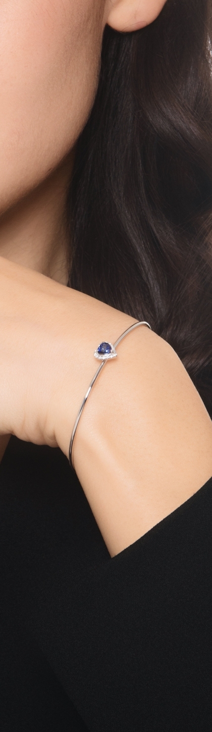 Bracelet rigide en or blanc avec saphir cœur et diamants