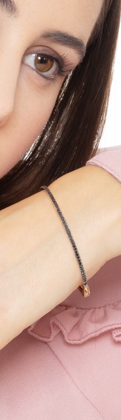 Bracelet rigide en or rose 18k avec des diamants noirs