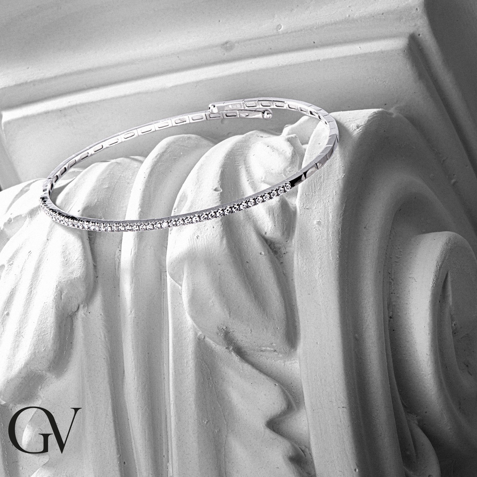 Bracelet Semi Rigide en Or Blanc 18K avec Diamants 5,5 cm