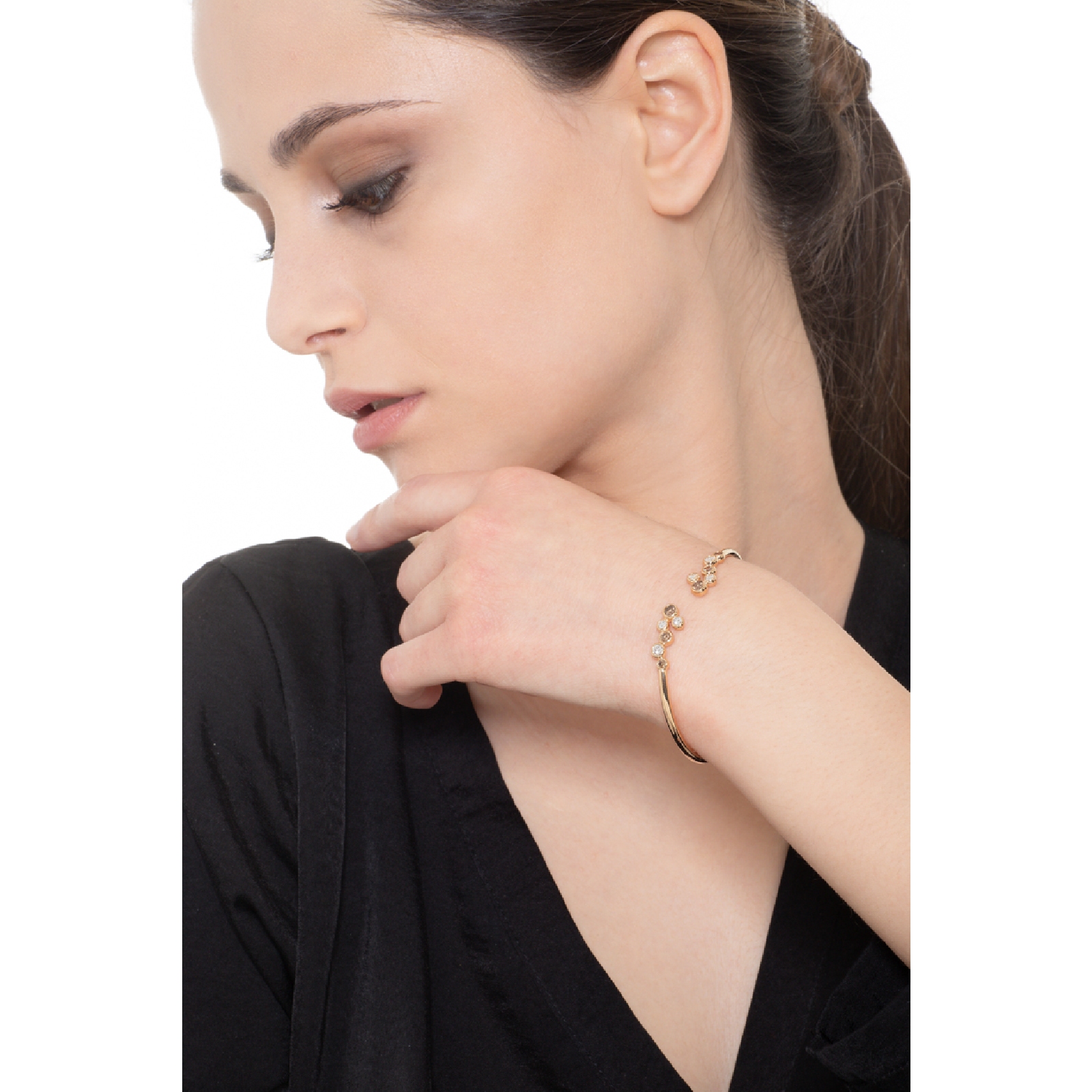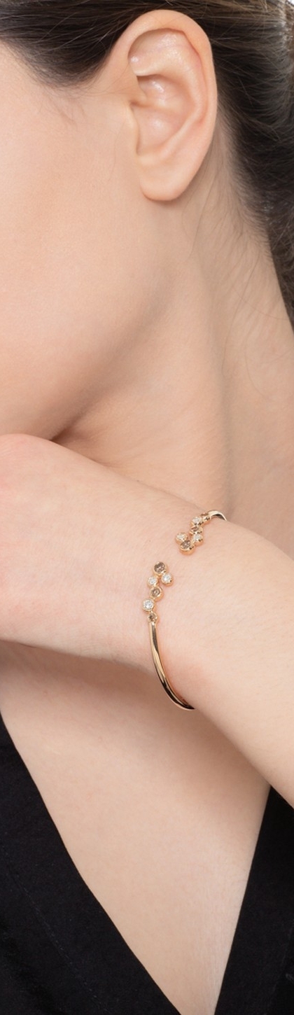 Bracelet semi-rigide or rose 18k avec diamants bruns et diamants