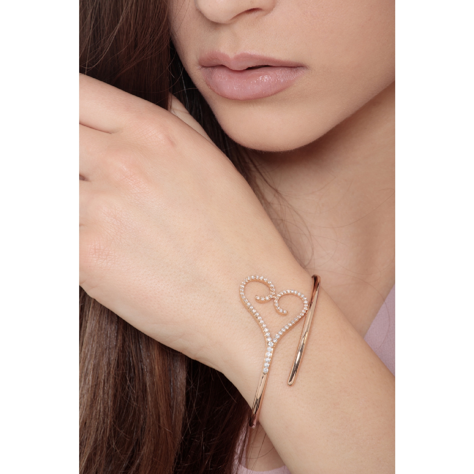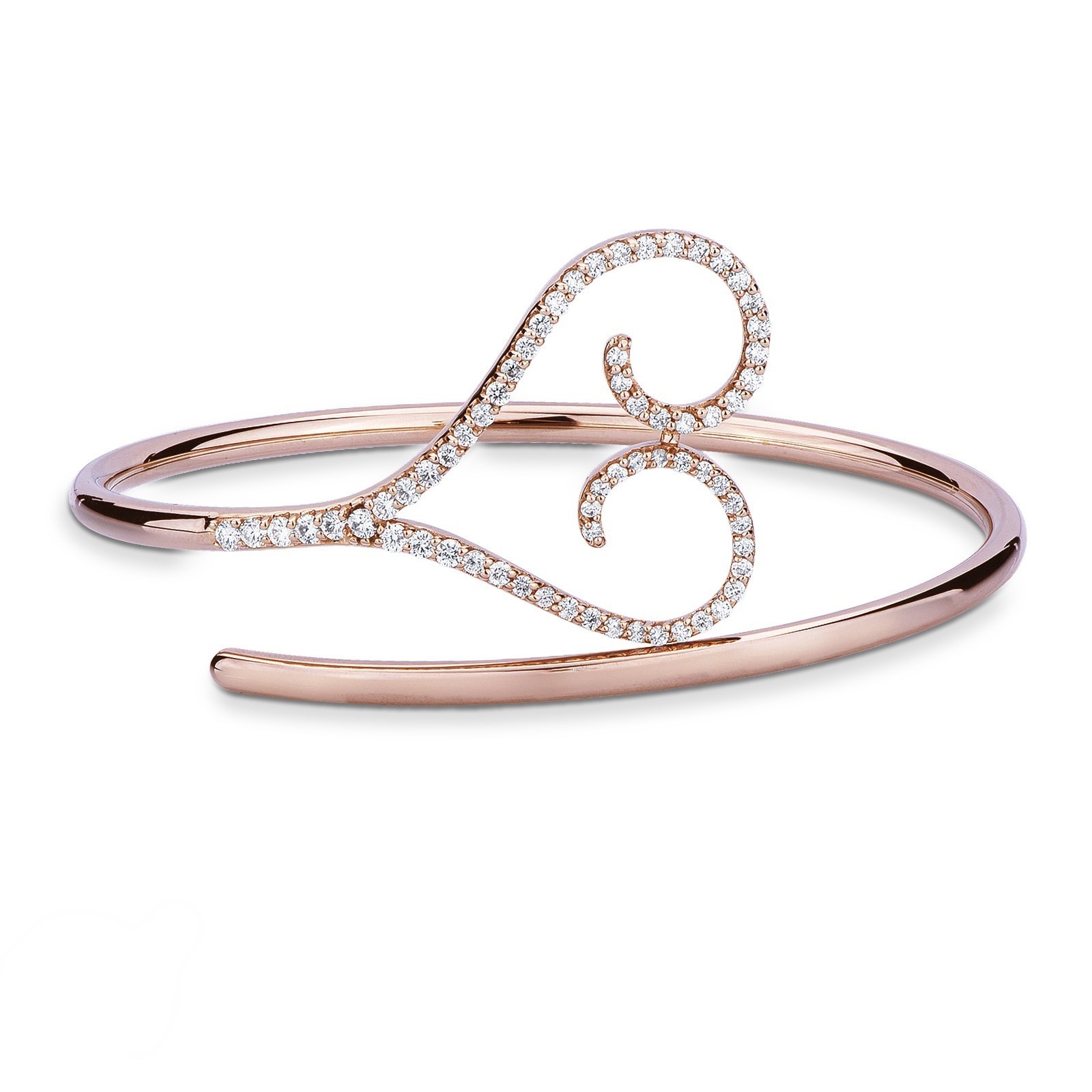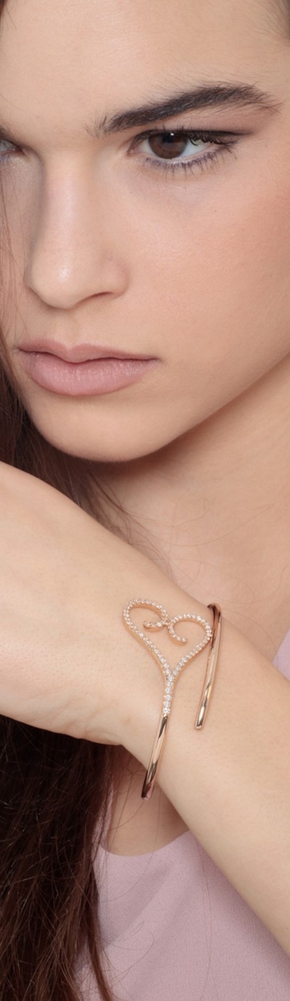 Bracelet semi-rigide or rose 18k cœur en diamants