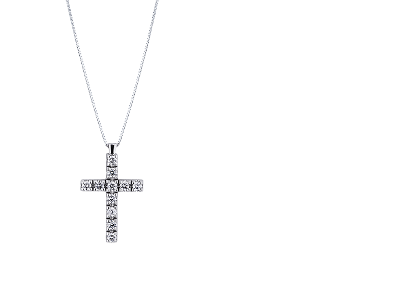 Les colliers croix de Gioielli di Valenza représentent un accessoire tendance pour homme, mais aussi un bijou d'une signification profonde, symbolisant traditionnellement la foi, l'espoir et l'amour. Gioielli di Valenza met à disposition dans sa gamme des pièces précieuses fabriquées à la main par ses experts artisans en or blanc ou en or rose 18 carats et ornées de gemmes telles que des diamants blancs et noirs et des saphirs bleus, conférant ainsi une touche d'élégance au bijou.